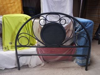 Se vende cama individual con un bonito cabecero. - Medida de 90 cm. - Cabecero con diseño curvo y detalles en bambú. - Estructura de madera.