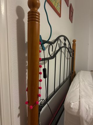 Cabecero de cama de matrimonio 1,35 cm de forja negra. Está nuevo ya que se ha usado apenas 4 meses. Sin arañazos ni rasguños. Posibilidad de más fotos.