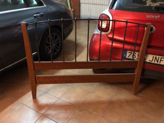 cabexero de cama de matrimonio de madera combinado con hierro forjado, en perfecto estado.