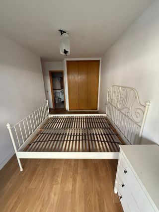 cama de forja matrimonio de 150 y de largo 1.90 con somier de laminas de madera tengo a juego dos mesitas que estan en el anuncio