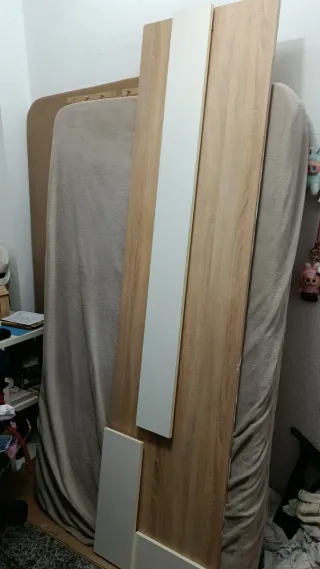 Se vende cabecero de madera maciza de estilo clásico con somier metálico de láminas de madera. El conjunto está en muy buen estado, prácticamente como nuevo, sin golpes ni desperfectos. El cabecero presenta acabado en madera barnizada con detalles tallados, ideal para dormitorios de estilo clásico o rústico. El somier es estructura metálica resistente con láminas de madera, muy cómodo y en perfecto estado. Características: Cabecero de madera maciza con diseño clásico Somier metálico con láminas de madera Estructura sólida y duradera Muy poco uso Listo para montar y usar Ideal para cama de 135 cm.