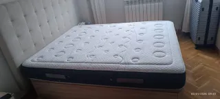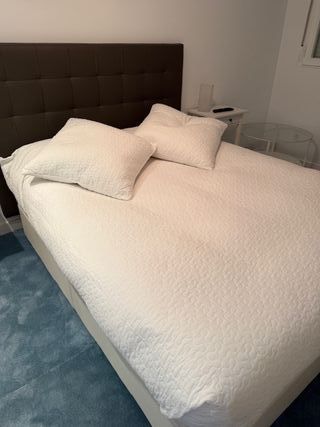 Se vende conjunto de canapé, colchón y cabecero de 150cm. - Canapé con gran capacidad de almacenaje. Preparación entrega 1 semana - Colchón cómodo y de buen tamaño. - Cabecero elegante.