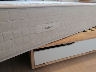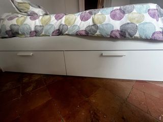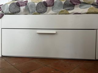 Cama Songesand de Ikea con cajones de almacenaje. - Medidas: 135x200 cm. - Incluye dos cajones amplios. - Diseño moderno y funcional. Uso ocasional para invitados. Cortamos el cabecero porque no nos gustaba (ver foto). Recogida semana que viene
