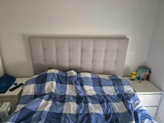 Vendo cama de matrimonio IKEA de 160 x 200 cm en excelente estado. Incluye todo el conjunto: ✔️ Estructura IKEA con cajones de almacenaje ✔️ Colchón IKEA ✔️ Cabecero IKEA a juego ✔️ Todo en color blanco Diseño moderno, muy funcional y resistente. Cama limpia, bien cuidada y lista para usar, tal como se ve en las fotos. 📐 Medidas: 160 x 200 cm 📍 Ubicación: Barcelona 🛠️ Se puede desmontar 🚚 Recogida a cargo del comprador 💰 Precio: TODO 450 € (negociable) 📩 Respondo rápido.