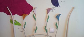 Cabecero infantil con un divertido diseño de flor. - Forma de flor. - Centro plateado. En un lateral tiene in pequeño picotazo que no se ve al ponerlo