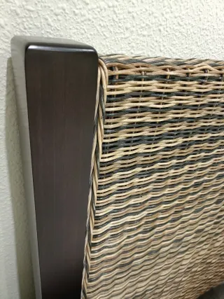 Cabecero de mimbre nuevo sin estrenar de tienda artesanal, precio de compra 147 euros lo vendemos por debajo de compra, no lo hemos estrenado, podemos mandar mas fotos de detalle no tiene ningun desperfecto ni visible ni oculto.