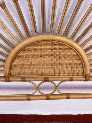 Disponemos de 2 unidades de Cabecero de estilo semicircular con un diseño inspirado en un abanico. Aporta un toque natural y bohemio a tu dormitorio. - Estructura principal de bambú. - Detalle central tejido en mimbre. - Diseño abierto con varillas curvas.