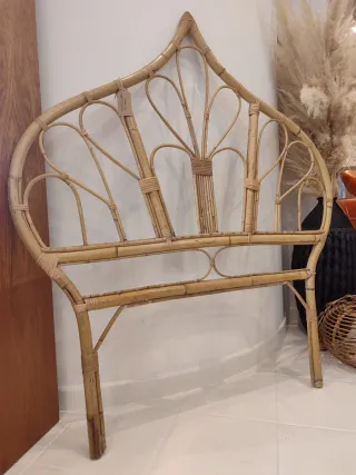 Se venden dos cabeceros de mimbre con un diseño único en forma de abanico. Aportan un toque natural y bohemio a cualquier habitación. - Fabricados en mimbre y caña. - Diseño en forma de abanico. - Color natural.