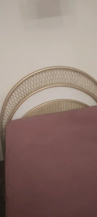 Cabecero de cama con un diseño elegante y materiales combinados.para cama individual de 90, tengo 2 iguales a 15€ cada uno, son decestructura fuerte y muy buena caludad, para recoger en SUCINA - Estructura principal en metal. - Panel central tejido en mimbre con patrón de rombos. - Acabado superior curvo con detalles ornamentales.