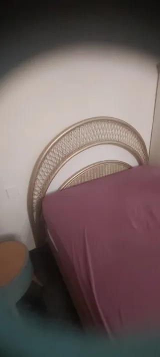 Original cabecero de ratán con un diseño de pavo real muy decorativo, ideal para camas de hasta 150 cm. Medidas: 160 ancho x 161 alto x 4cm de fondo - Estructura de ratán y mimbre. - Tono natural Precio original casi 400€. No lo he llegado a colocar porque no me cuadra con el papel de la pared.