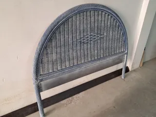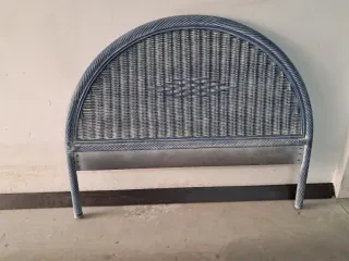 Cabecero de cama con un diseño curvo y elegante. - Estructura de mimbre tejido. - Acabado en tonos azul y gris. - Para cama de 1,50. - Medidas : 1, 70 ancho y 1,38 alto.