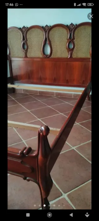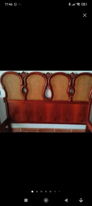Elegante cabecero de madera con detalles en mimbre tejido. - Diseño curvo en la parte superior. - Marco de madera oscura. Solo hace falta limpiarlo bien. Cualquier duda, pregunten sin compromiso. NEGOCIABLE