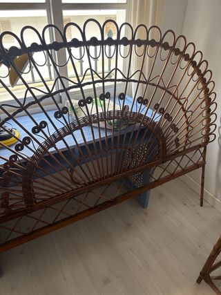 Se venden dos cabeceros de mimbre con un diseño semicircular y detalles en la parte superior. - Medida: 110 cm de ancho. - Material: Mimbre y bambú. Miden de alto 125 cms. Recogerlos de Mancha Real