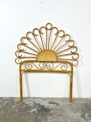 Precioso cabecero de mimbre, ideal para darle un toque rústico a tu dormitorio. Es una pieza única con un diseño elegante. - Diseño de abanico. - Estructura resistente.