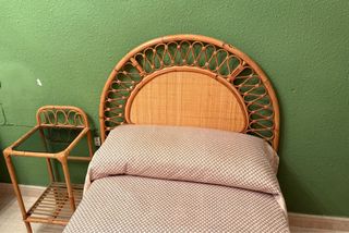 Cabecero y mesilla de mimbre. opcion de somier de laminas