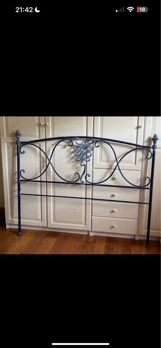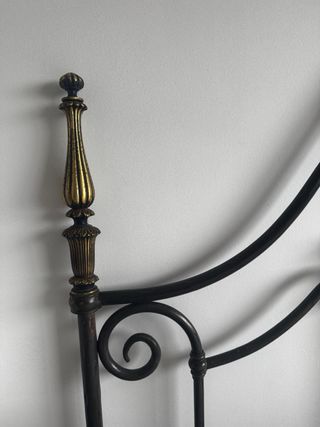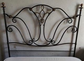 Elegante cabezal de forja de la marca Peña Vargas, ideal para cama de 150 cm. Está como nuevo. - Diseño con detalles dorados. - Estilo clásico y elegante. - Fabricado en metal resistente.