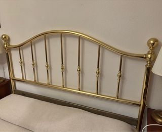 Cabecero dorado para cama de 135 cm. - Estructura de metal con acabado dorado. Mide 112 cms de alto y 143 cms de ancho Solo venta en persona En muy buen estado, solo ligeros roces (ver fotografias)