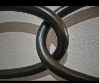 Solo por un tiempo limitado. Precioso cabecero artistico de forja en bronce realizado a mano por Peña Vargas, simbolizando según el autor la unión infinita. Precio original 600€. A recoger en oh my box barajas el sábado 20 de diciembre por la mañana, de no ser así ya no habrá prisa y subiré el precio a 250€. No es negociable.