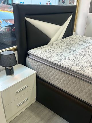 Elegante cabecero para cama matrimonial con un diseño moderno. - Combinación de colores negro y blanco. - Acabado en tela y piel. 🛋️ Mobiliario de Calidad para el Hogar Nos complace poner a su disposición una cuidada selección de muebles pensados para el confort y la elegancia de su hogar. 📍 Visítenos en: Calle San Vidal, 7 – Alcalá de Henares 🕒 Horario comercial: Consultar disponibilidad en tienda Ofrecemos: • Colchones desde 79 € • Sofás desde 199 € • Cabeceros en polipiel (110x120) desde 79 € • Canapés, armarios, cómodas, mesitas de noche y mucho más.