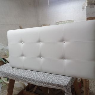 Preciosa cabecera de cama, de polipiel blanca, en perfecto estado. - Diseño elegante y moderno. - Ideal para darle un toque sofisticado a tu dormitorio. -Dejo muy economico porwue en algunas zonas esta ssltando la polipirl ,pero del rocd de la cama,sd didimula mucho. perfecto asi o para tapizsr si ll quierd nuevi.