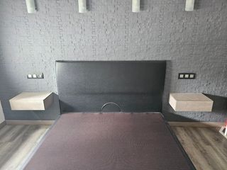 Conjunto de dormitorio 135 compuesto por un somier, un cabecero y dos mesitas de noche. El cabecero y mesitas son de polipiel color marrón oscuro NO INCLUYE COLCHON- Incluye somier, cabecero y dos mesitas de noche. - Perfecto estado. - Color marrón y negro. A recoger en persona en Elche Mesitas polipiel 0,50x0,30x0,42 Cabezal polipiel 1,55x0,8x1,10