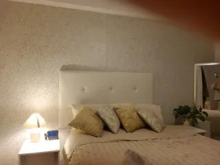 Cabecero de cama con un diseño elegante y moderno. Añade un toque de estilo a tu dormitorio. - Tapizado en tela. - Estructura de madera. Tiene alguna pequeña marca que pongo en fotos -ver en fotos- con la almohada y cojines no se aprecia. En mi perfil, vendo las mesillas a juego. Hay que venir a recoger. No negociable. 35 eu