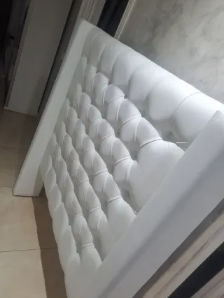Cabecero de cama con un diseño capitoné elegante. Mi gata meló arañó un poquito - Tapizado en polipiel. - Color blanco.