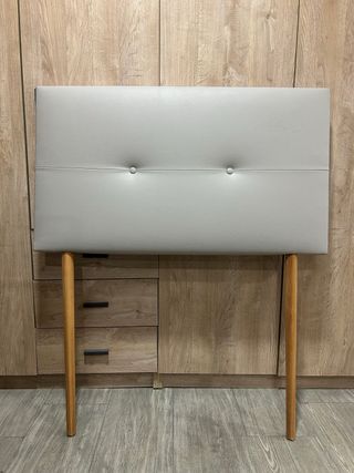 Cabecero tapizado gris con patas de madera