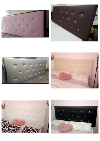 cabeceros de cama polipiel Nuevos con piedras de cristal brillantes medidas disponibles: 90*60= 50€ 105*60= 55€ 135*60= 70€ 150*60= 90€ colores: Blany, negro, beige, marrón oscuro, plateado, rosa