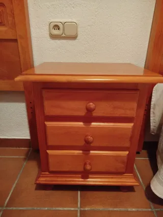 Mesita de noche de estilo provenzal con un diseño clásico y elegante. - Tres cajones con tiradores ornamentados. - Acabado en madera natural. Cabeceros de todos los tamaños todo a 10€ a elegir