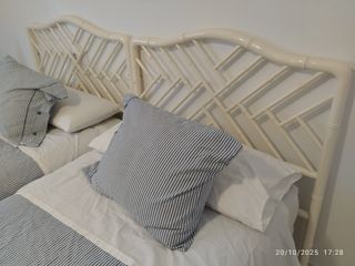 Se venden dos cabeceros de cama de 90 cm. Están en buen estado. - Diseño de ratán. - Color blanco.