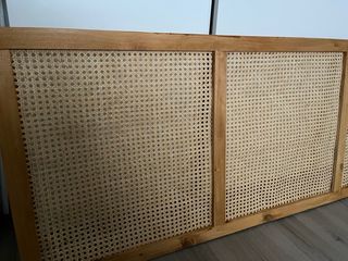 Cabecero de diseño natural con estructura de madera y panel central de ratán. Nuevo sin usar