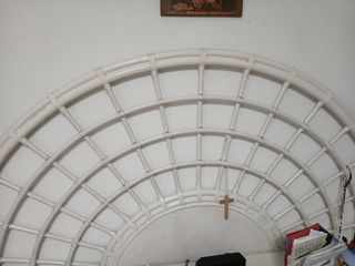 cabecero ratán con dos enganches para anclarlo a la pared. medidas en las fotos.