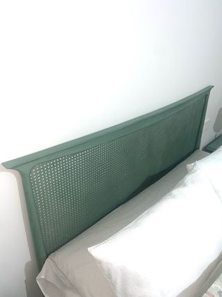 Cabecero de cama con un diseño elegante y natural. (sin somier) - Fabricado en madera y rejilla. - Acabado en color verde - Para colchón de 135/140