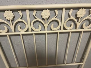 Cabecero de cama individual con un diseño floral. - Estructura de metal. - Acabado en color beige/blanco. - Detalles decorativos florales y espirales.