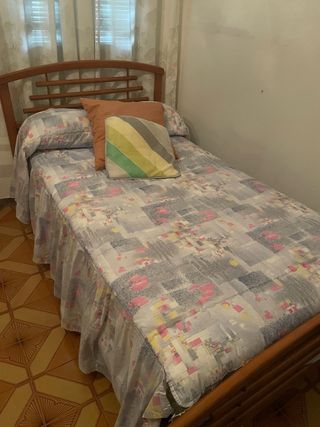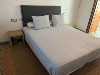 Conjunto de dormitorio completo. - Colchón 150x190 viscoelástico; altura 25 cm - Base de canapé. Altura 38 cm - Cabecero 160 largo x 90 alto ( sujeto a pared) - 2 Mesillas de noche 54 cm ancho x 66 cm de alto Interesados recoger en persona