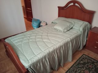 Cama individual con un diseño clásico y elegante. - Estructura de madera robusta. - Cabecero y piecero de madera con detalles curvos. - Somier de lamas de madera. 90 Ancho/ 185 Largo Tengo dos camas iguales: Por separado 100€ cada una las dos juntas 175€. Una está en Salamanca y la otra en un pueblo.Transporte a cargo del comprador.