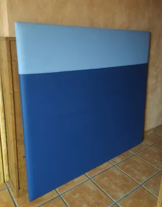 Cabecero de polipiel con un diseño moderno y elegante. - Dos tonos de azul. - Costuras visibles en la unión de los colores.