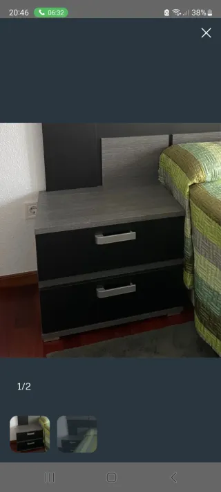 Vendo cabecero completo de cama, con mesitas y somier. En un estado impecable. Ancho completo incluyendo mesitas 270 cm. Mesitas de 60 de ancho por 47 de alto. Somier de 135 por 190, pero la estructura de madera de la cama es más larga