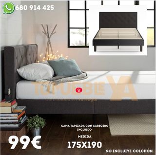 Cama tapizada con cabecero incluido, ideal para tu dormitorio. El precio es de 99€. - Medida: 175x190 cm. - No incluye colchón.