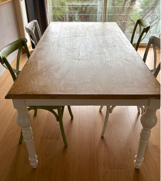 Mesa de comedor con un diseño clásico y elegante. - Tablero de madera con acabado natural. - en buen estado, menos de 6 meses de uso. - medidas: 200cm x 100cm La entrega se hace en Cabrils durante el mes de marzo en fecha por determinar.