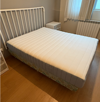 Colchón de muelles ensacados, de 4 meses de uso. 190 cm de largo x 150 cm de ancho y 24 cm de ancho. Entrega en Cabrils en fecha por determinar del mes de marzo. firmeza: muelles embolsados individualmente. Las zonas de confort ofrecen una distribución uniforme del peso con una parte más blanda para caderas y hombros. La gruesa capa de espuma aporta mayor comodidad (descripcion de Ikea - precio nuevo 399€)