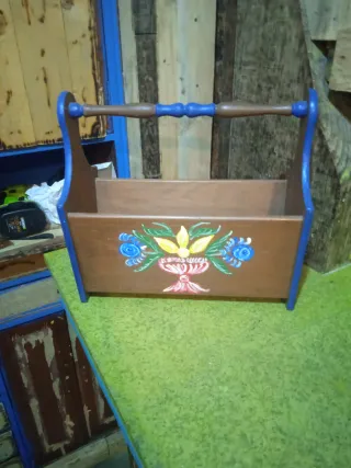 Revistero de madera pintado a mano