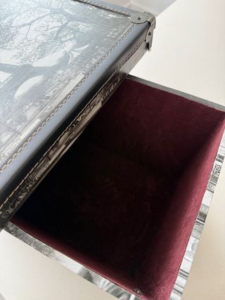 Caja de madera con un diseños de escenas de París. Interior de terciopelo burdeos. Ideal para almacenar objetos.