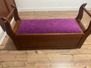 Baúl banco madera maciza asiento morado