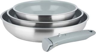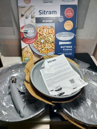 Set de sartenes Sitram Arpège nuevo, sin usar. Incluye: • 3 sartenes (20 cm, 24 cm, 28 cm) • mango extraíble • revestimiento antiadherente cerámico • compatible con inducción Muy fácil de limpiar y ocupa poco espacio al guardarlo. 0% PFOA / PTFE Producto nuevo con su caja original. Ideal para cocina, inducción, piso, camping o apartamento.sarten Precio en tienda 50-60€. sartenes sarten induccion sarten antiadherente sarten cocina set sartenes sarten ceramica sarten induccion cocina bateria cocina utensilios cocina Material de las sartenes: Acero inoxidable (estructura principal) Revestimiento interior antiadherente de cerámica