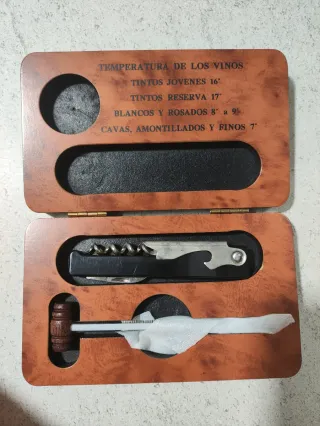 juego de utensilios de vino..con caja y envoltorio original. nuevo a estrenar. nunca usado