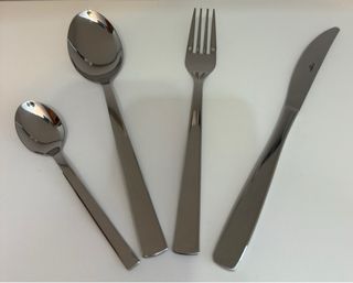 Conjunto de cubertería de acero inoxidable, completamente nuevo. - 24 piezas - 6 Cucharas, 6 tenedores, 6 cuchillos y 6 cucharillas de postre - Diseño elegante, moderno y minimalista. - Apto para lavavajillas. - Calidad Premium