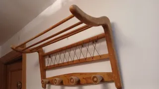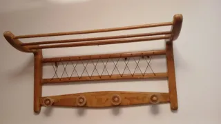 Perchero de madera de pino con un diseño rústico y funcional. - Medidas: 65 cm de ancho, 33 cm de alto y 26 cm de profundidad. - Fabricado en madera de pino. - Dispone de 4 colgadores en la parte inferior.