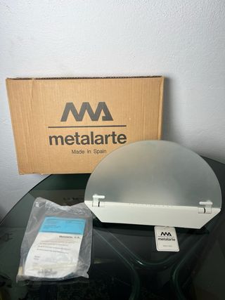 Lámpara de diseño Metalarte Cíclope 1271, completamente nueva y en su embalaje original. Este aplique nunca se ha usado, viene en su caja original con sus instrucciones, tornillos y tacos para poner en la pared. BOMBILLA INCLUIDA. El cristal parece estar suelto, no se si venia con algún enganche pero si se coloca como viene en la foto no se cae y si cae hacia abajo tampoco. Más lámparas METALARTE en el perfil.